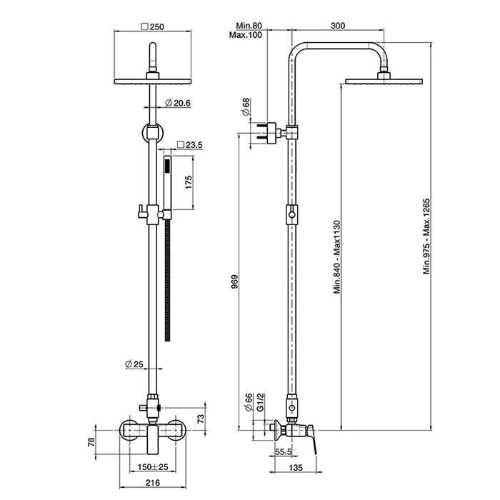 Смеситель для душа Fima Carlo Frattini Fit настенный, с душ.стойкой, верхний душ 250, ручной душ, белый матовый F3385/2BS