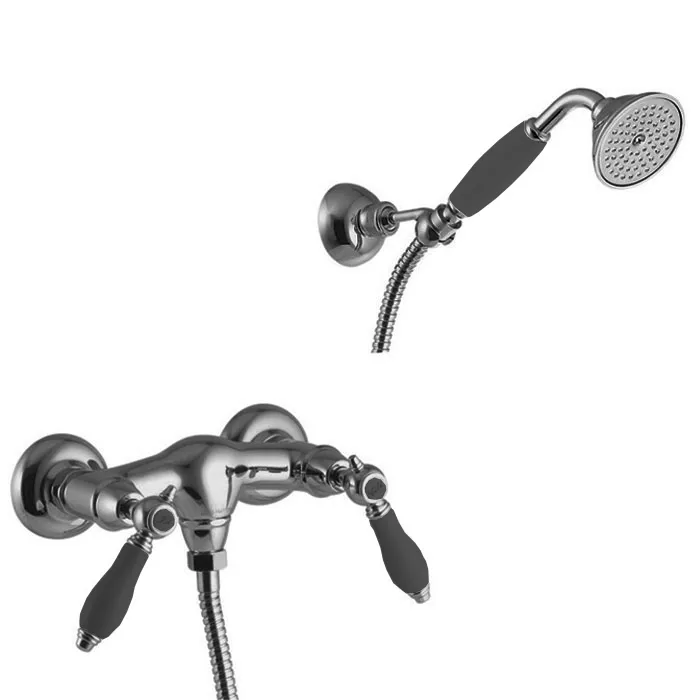 Смеситель для душа Fima Carlo Frattini Herend настенный, с ручным душем., черные ручки, хром F5405CNCR
