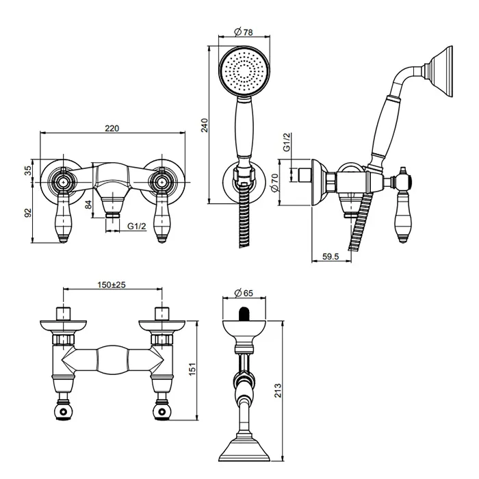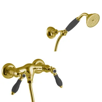 Смеситель для душа Fima Carlo Frattini Herend настенный, с ручным душем., черные ручки, золото F5405CNOR