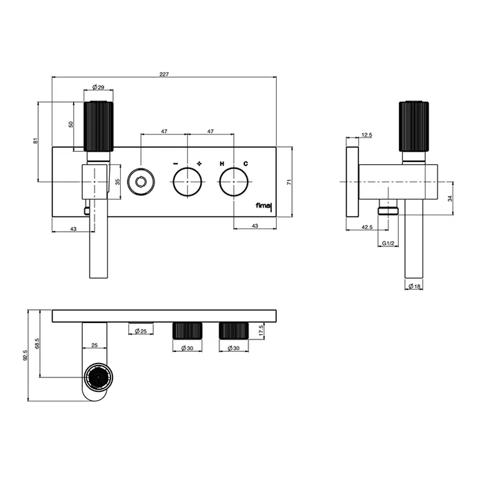 Смеситель для душа Fima Carlo Frattini Outdoor встраиваемый, 2 выхода с ручным душем, чёрный матовый F5979X2SNS