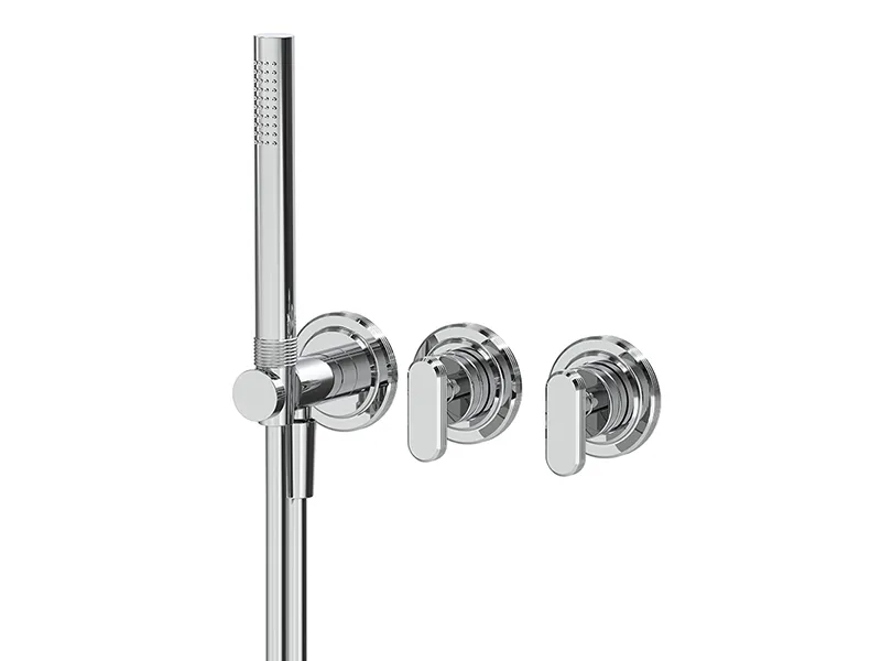 Встроенный смеситель для душа Fima Carlo Frattini PARK LANE F1319WX8CR на 2 источника с душевым комплектом, цвет хром. Только внешняя часть, ручной душ с защитой от извести анти-кальк, держатель для душа с подводом воды, переключатель, гибкий шланг хромалюкс 1500 мм, металлическая пластина, внутренняя часть (арт.F3400W) заказывается отдельно.