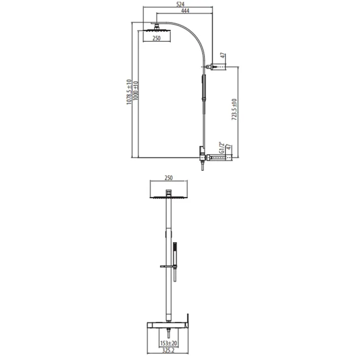 Смеситель для душа Gattoni Color Cube душевая колонка с верхним душем 250 ,ручная лейка, хром 8595/PDC0cr