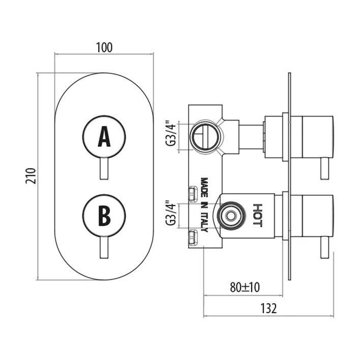Смеситель для душа Gattoni Flat Termostatici 2 рычага на 2 выхода, хром TS991/22C0