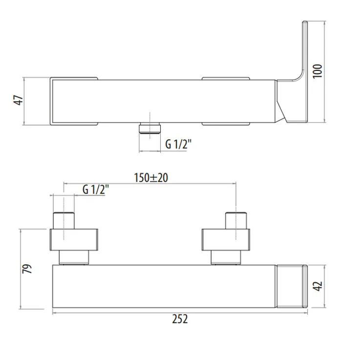 Смеситель для душа Gattoni Kubik однорычажный, вывод снизу, nero opaco 2525/25NO
