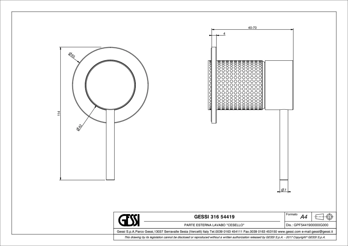 Смеситель однорычажный для душа Gessi 316 Cesello 54419.726 выполнен в цвете теплая бронза с покрытием pvd.