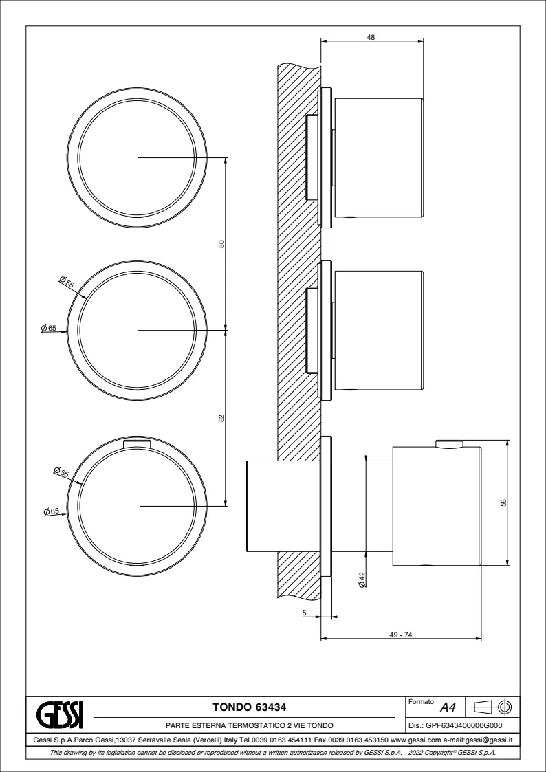 Смеситель для душа Gessi 63434.710 Brass PVD