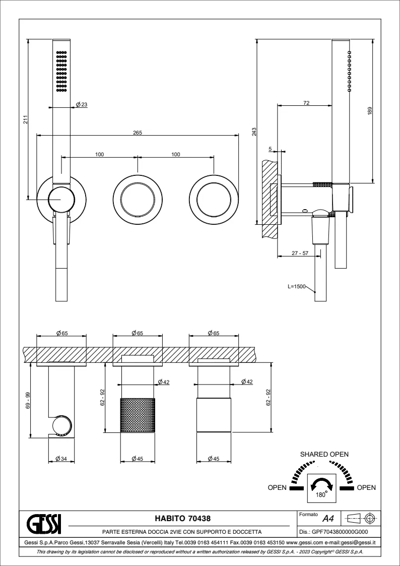 Смеситель для душа Gessi 70438.735 Warm Bronze PVD