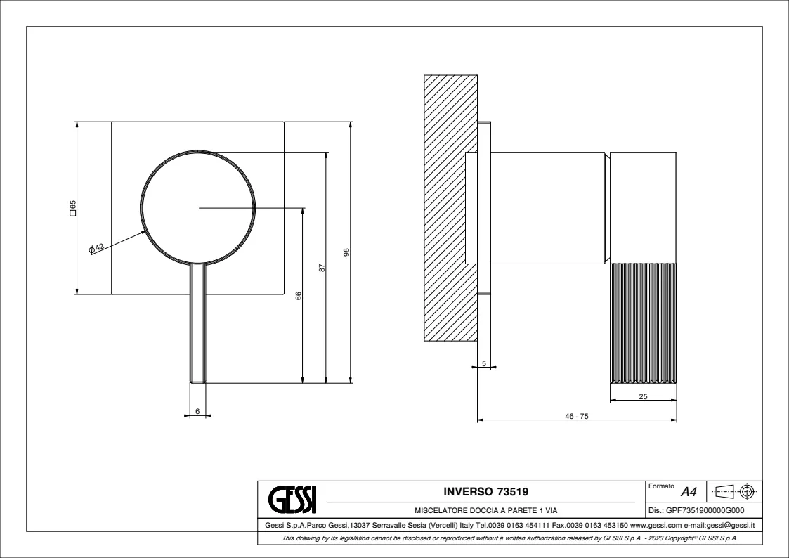Смеситель для душа Gessi 73519.726 Warm Bronze Brushed PVD
