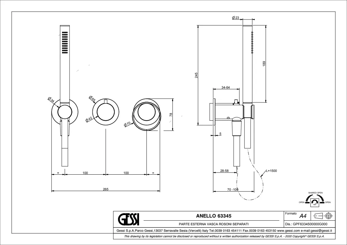 Смеситель для душа Gessi Anello 63345.031 Chrome