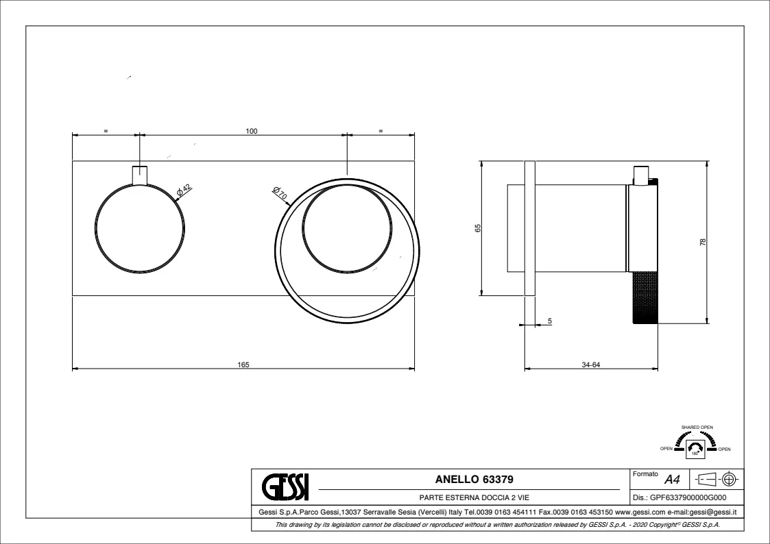 Смеситель для душа Gessi Anello 63379.031 Chrome
