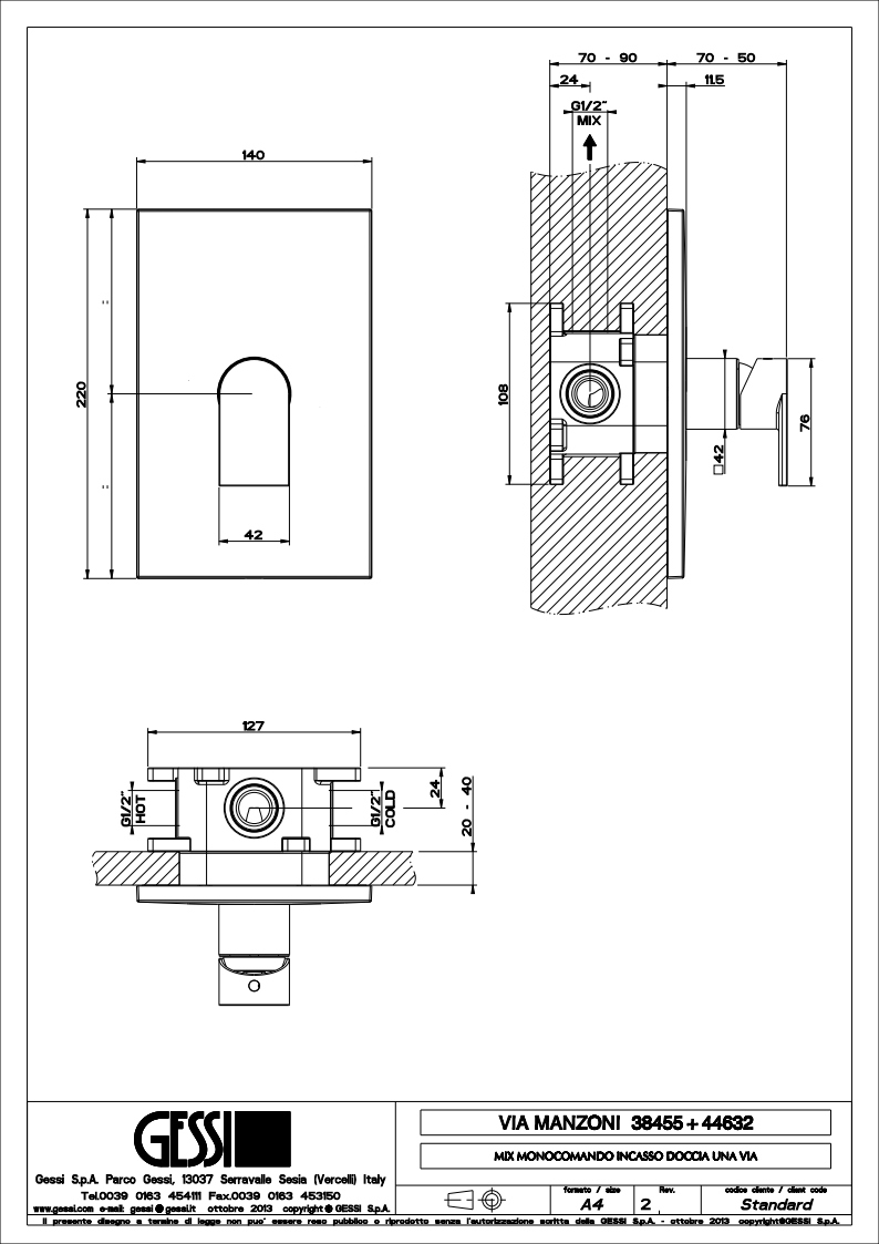 Смеситель для душа Gessi Emporio Via manzoni 44632.031 Chrome