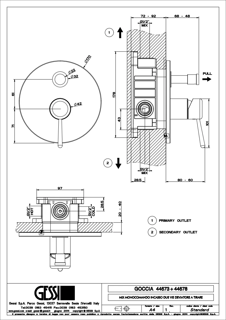Смеситель для душа Gessi Goccia 44678.279 Matte White