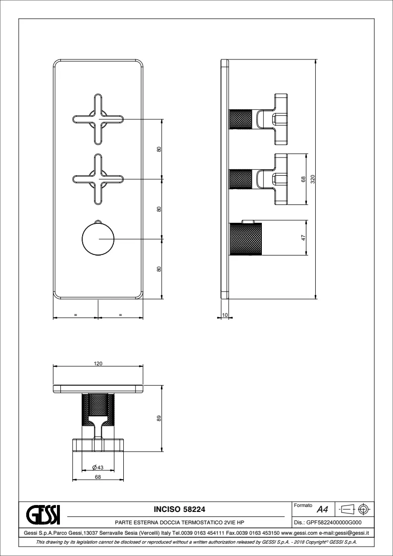 Внешние детали для настенного термостатического смесителя высокой производительности.