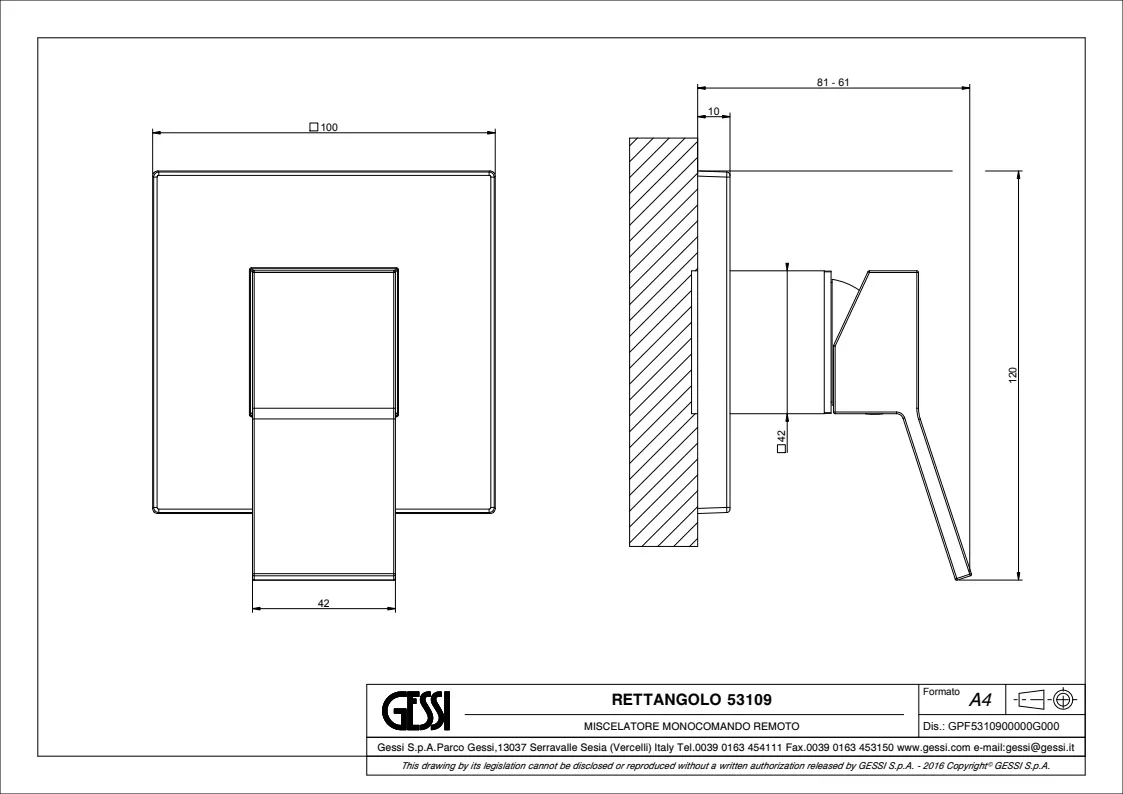 Смеситель для душа Gessi Rettangolo K 53109.149 Finox Brushed Nickel
