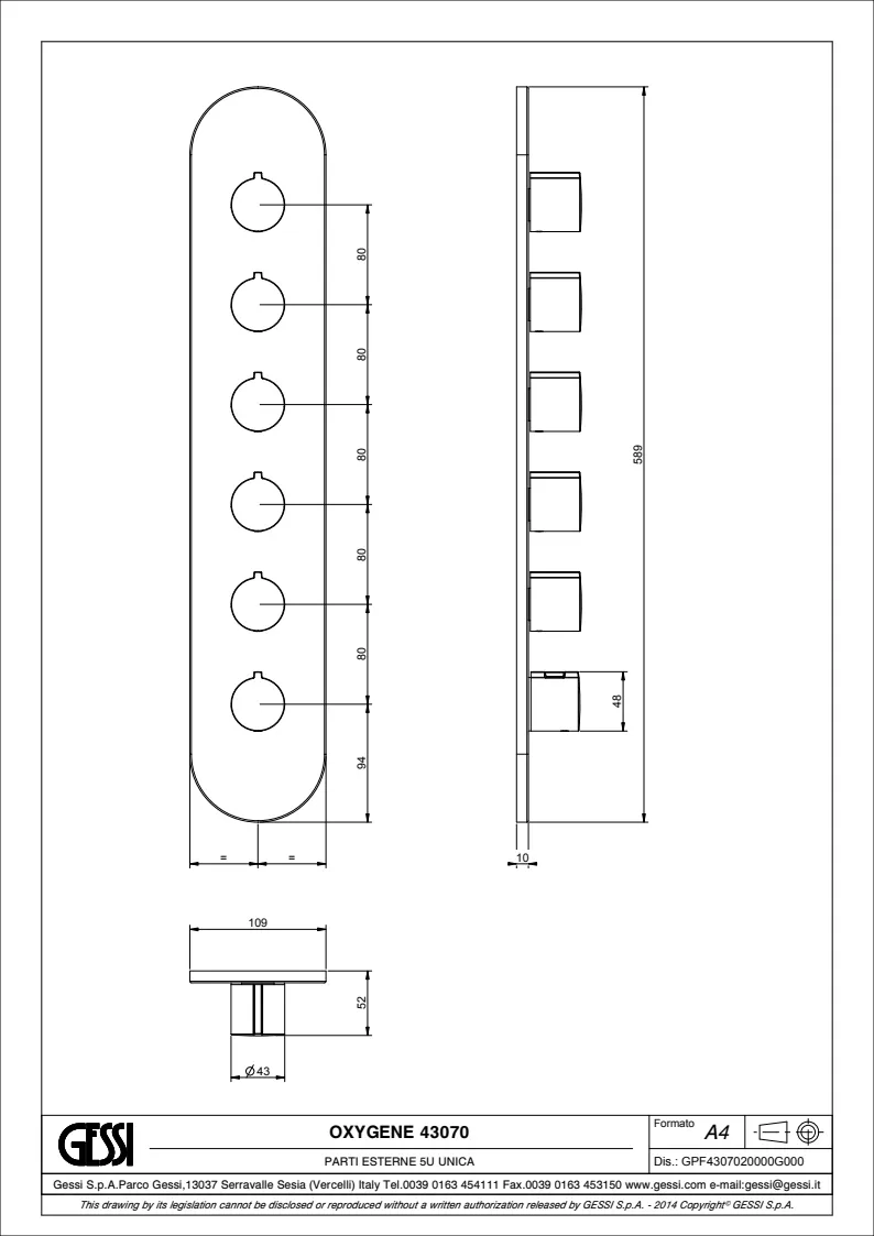 Смеситель для душа Gessi Tondo 43070.031 Chrome