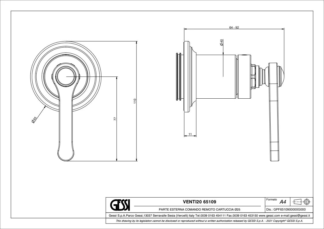 Смеситель для душа Gessi Venti20 65109.727 Brass Brushed PVD