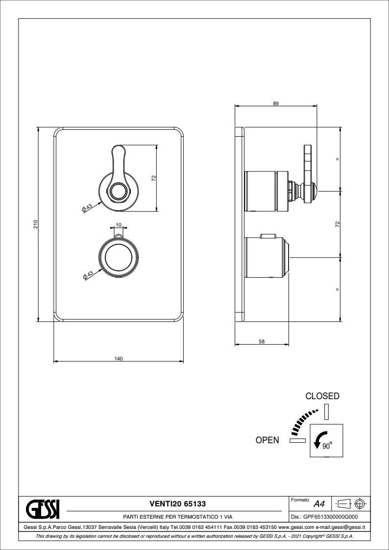 Смеситель для душа Gessi VENTI20 65133.727 Brass Brushed PVD