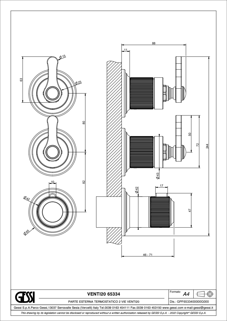 Смеситель для душа Gessi VENTI20 65334.727 Brass Brushed PVD