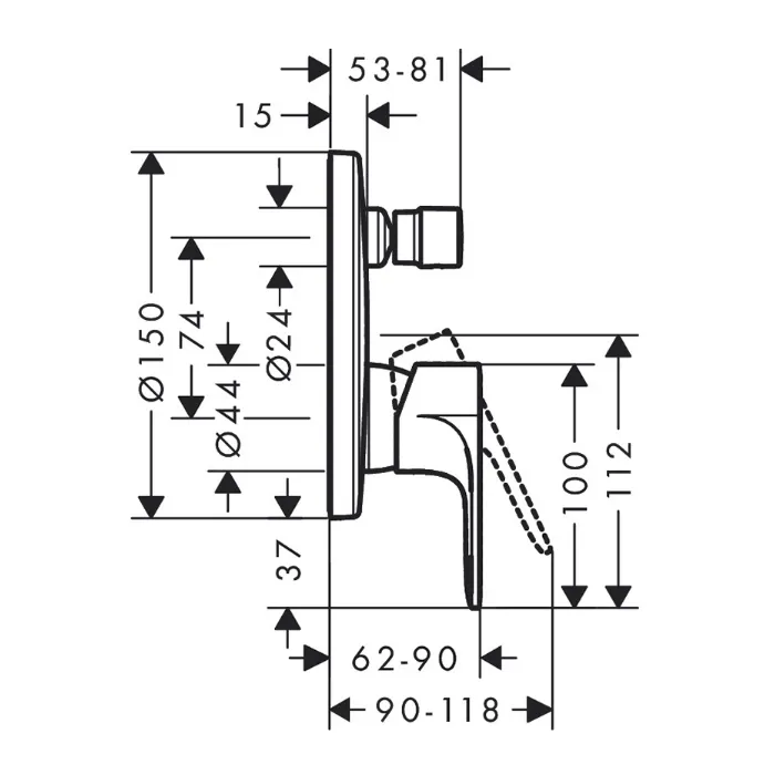 Смеситель для душа, Hansgrohe, Rebris S, цвет-хром