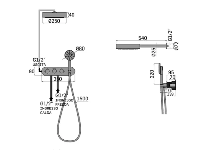 Mamoli MONSIEUR 2992000000 Смеситель для душа термостатический с душевой колонной, верхним и ручным душем. Душевая колонна регулируемая по высоте с фиксированным межосевым расстоянием. Цвет Chrome