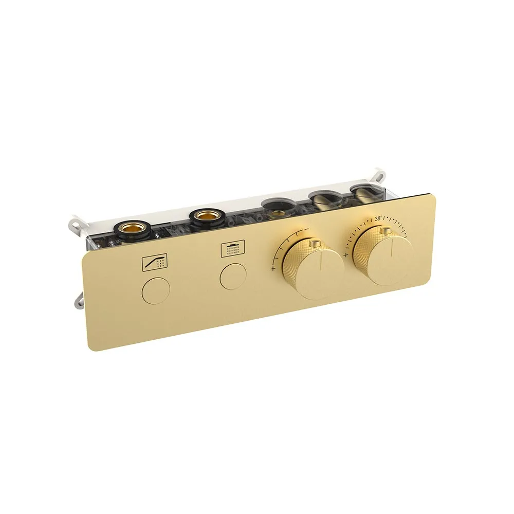 NEMO NM-8051BG Термостатический встраиваемый смеситель для душа из стены на 2 потребителя, BRUSH GOLD