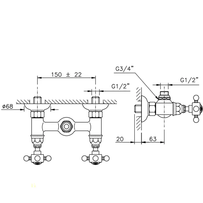 Смеситель для душа Nicolazzi El Capitan на 2 отверстия, вывод сверху 1/2 (без шланга и лейки), тёмная бронза 1425DB69
