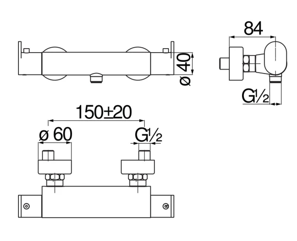 UP94030BM UP термостатический смеситель для душа, матовый черный