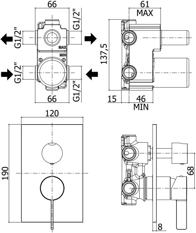 Смеситель для душа Paffoni Rock RO018CR (с внутренней частью)
