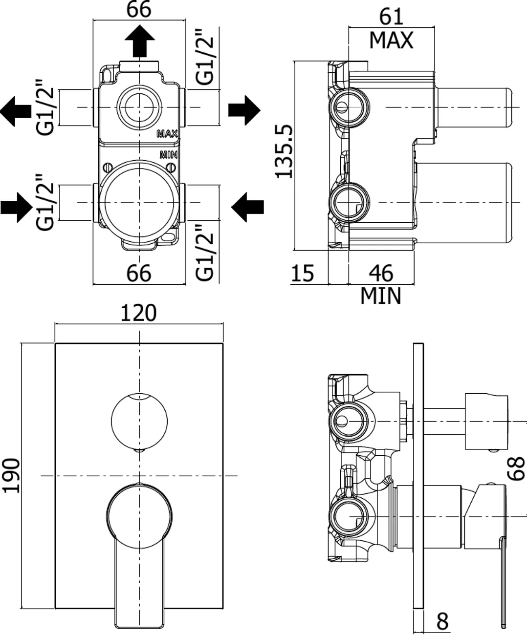 Смеситель для душа Paffoni Tango TA019CR/M (с внутренней частью)