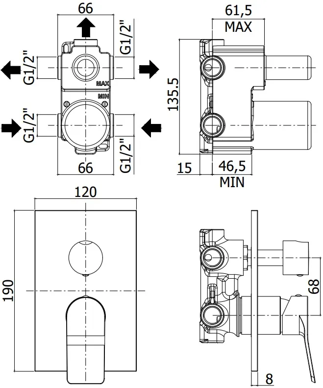 Смеситель для душа Paffoni Tilt TI019BO/M (с внутренней частью)