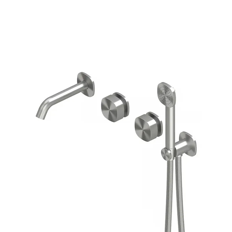 QuadroDesign SUPER 2269TAS Группа смесителей из стены на два потребителя с ручным душем, держателем, выпуском, шлангом 1500 мм, цвет Brushed Stainless Steel