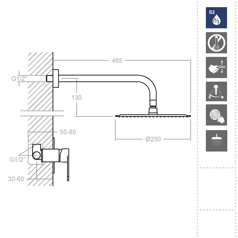 - Высокая надёжность: латунь с PVD покрытием и устойчивость к давлению.