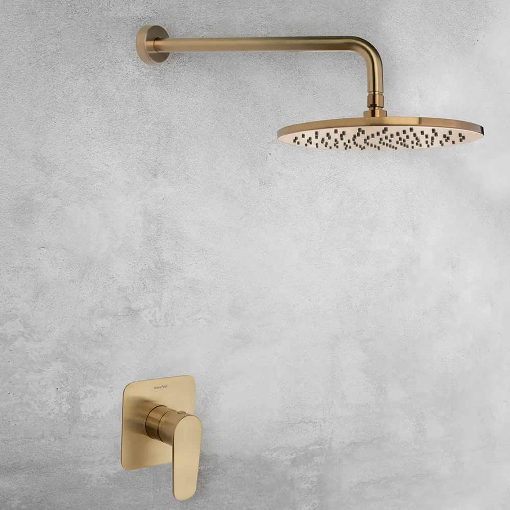 Смеситель для душа Ramonsoler Alexia встраиваемый с тропическим душем золото K3618012OC – это воплощение изящества и современной функциональности. Эта модель, входящая в коллекцию Alexia, предлагает уникальное сочетание строгих геометрических форм с плавными линиями, что делает её идеальным выбором для современных ванных комнат.