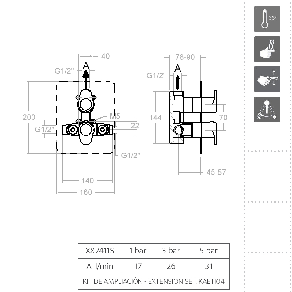 - Безопасность на высшем уровне: Система HOTBLOCK блокирует подачу воды слишком высокой температуры. Это гарантирует защиту от ожогов в случае резких перепадов температуры, таких как запуск другого смесителя, слив унитаза или работа стиральной машины.