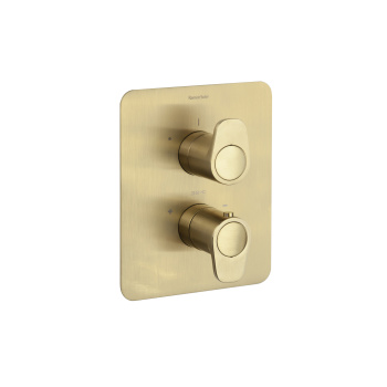 Представляем вашему вниманию уникальный смеситель для душа Ramonsoler Alexia встраиваемый термостатический на 1 выход золото, модель 362411SOC. Этот товар – яркий представитель коллекции Alexia, сочетающей в себе прямые углы и округлые линии, что делает его идеальным выбором для современных ванных комнат.