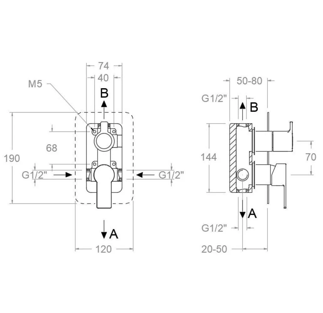 Смеситель для душа Ramonsoler Blautherm встраиваемый на 2 выхода 941502S