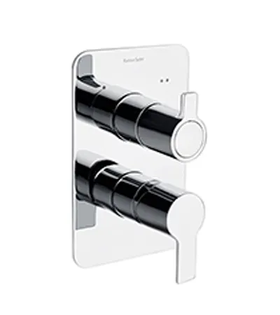 Смеситель Ramonsoler Blautherm оснащён двумя выходами, что позволяет легко подключить как душевую лейку, так и тропический душ или отдельный излив. Его корпус выполнен из хромированной латуни, обеспечивающей долговечность и устойчивость к внешним воздействиям, а хромовое покрытие придаёт изделиям блеск и элегантность.