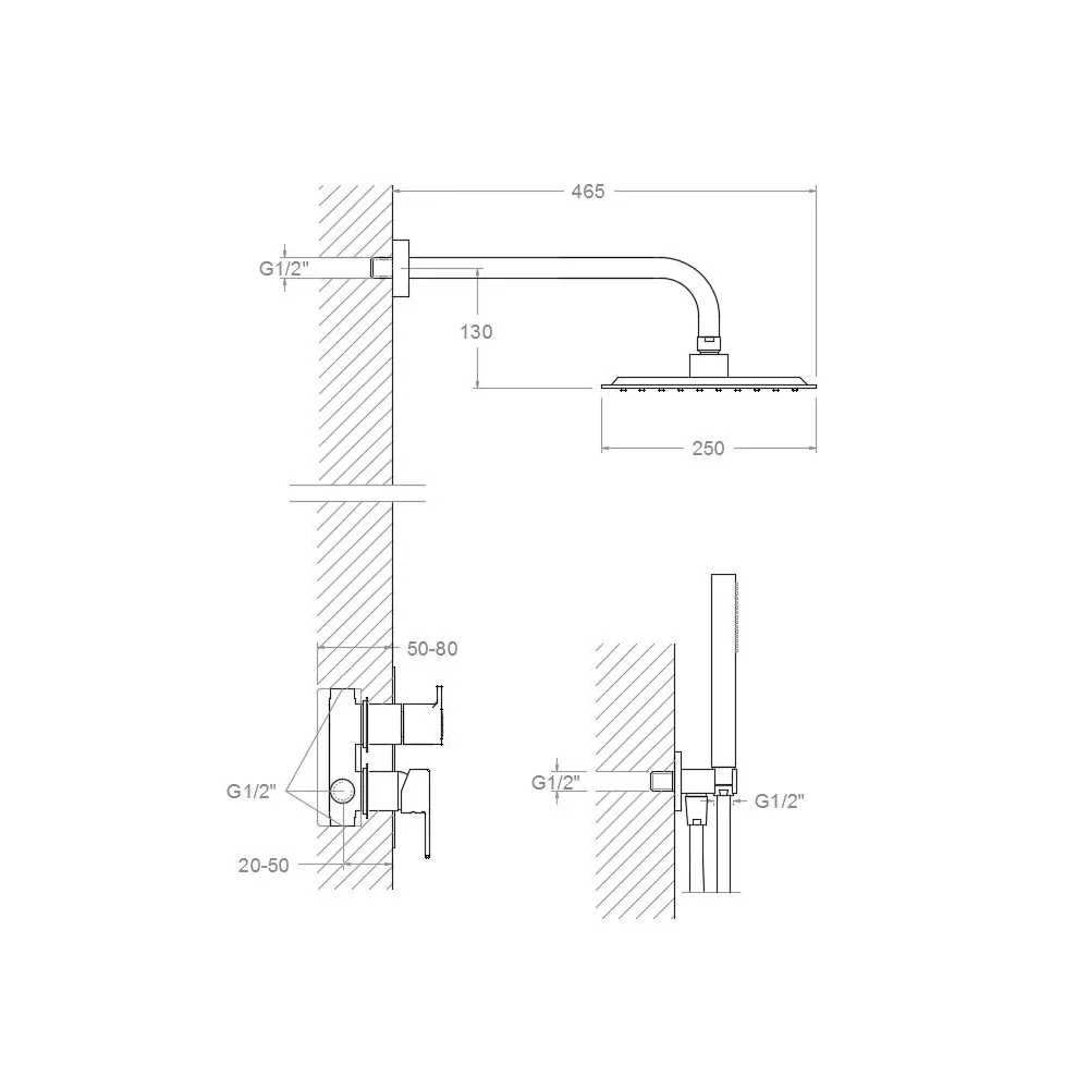 Смеситель для душа Ramonsoler Blautherm встраиваемый с тропическим и ручным душем 941502RK250