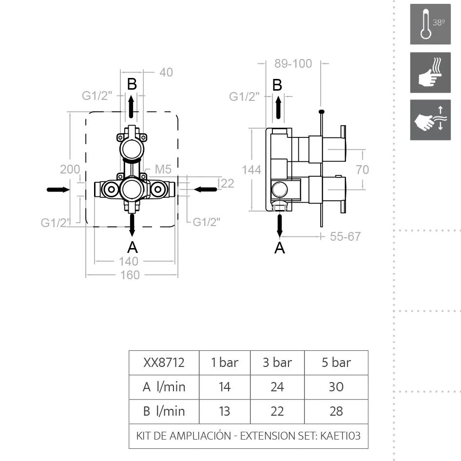 • HOTBLOCK — система, предотвращающая подачу слишком горячей воды при резком падении давления холодной воды (например, когда кто-то включил холодную воду в другом кране или произошёл слив). Эта система защищает от ожогов.