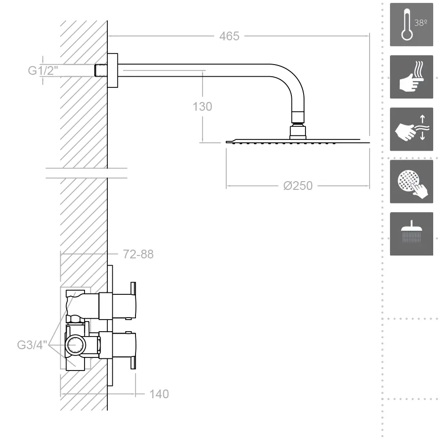 Смеситель для душа Ramonsoler Drako встраиваемый термостатический с тропическим душем K3324012