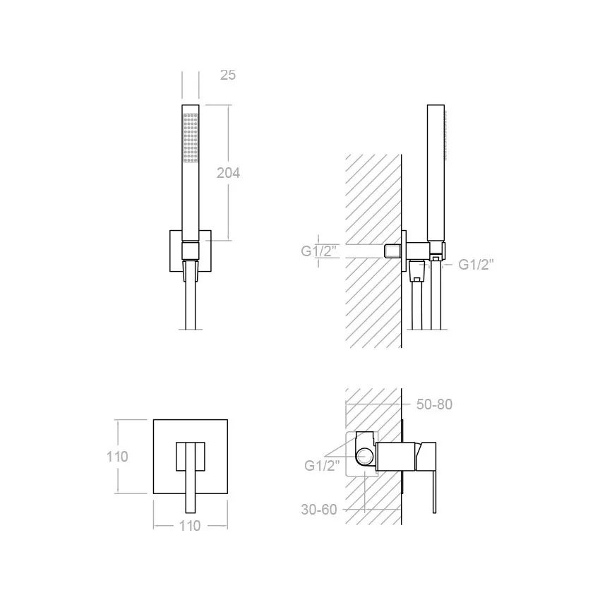 Смеситель для душа Ramonsoler Kuatro NK встраиваемый с ручным душем K4918011
