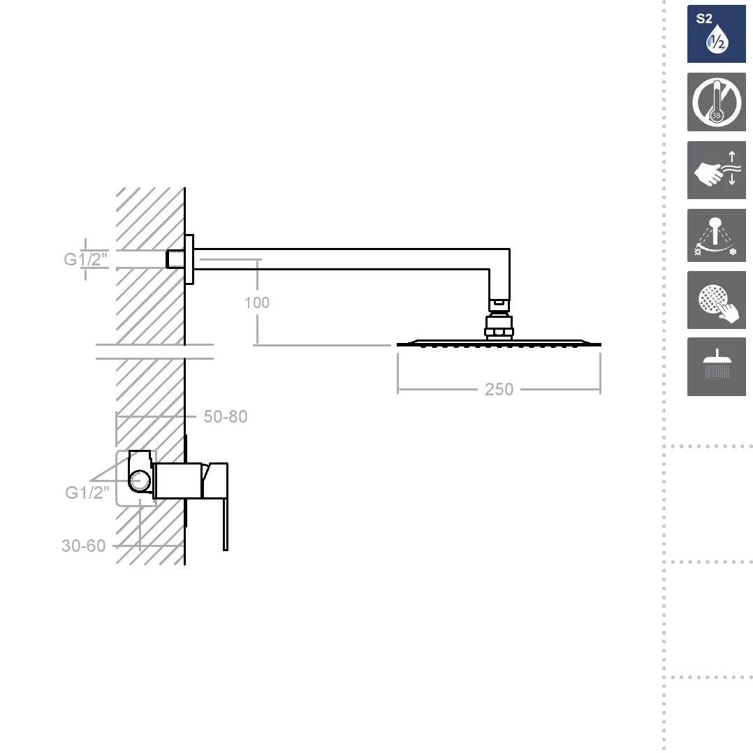 Система двуступенчатого открытия воды S2 позволяет уменьшить расход воды до 50%, сохраняя при этом комфорт использования. Первый уровень открывается легко и плавно, при сохранении сберегающего потока, а для большего напора необходимо лишь слегка нажать дальше, чтобы перейти во второе положение. Это обеспечивает не только экономию воды, но и сокращение расходов на коммунальные услуги.