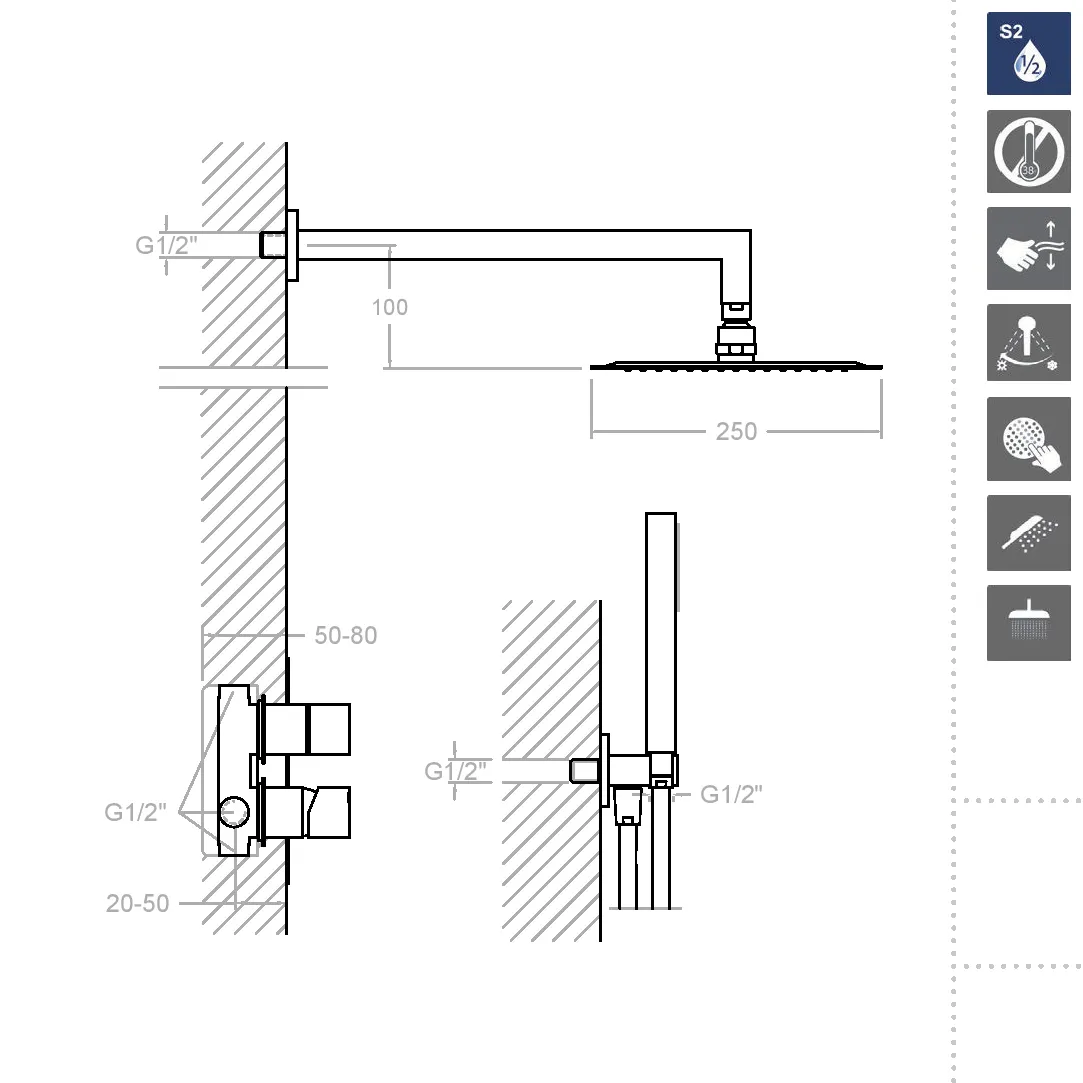 - Двухступенчатая система S2 позволяет значительно снизить расход воды, сохраняя при этом комфорт. Открывая воду в два этапа, можно сэкономить до 50% воды без компромиссов в использовании.