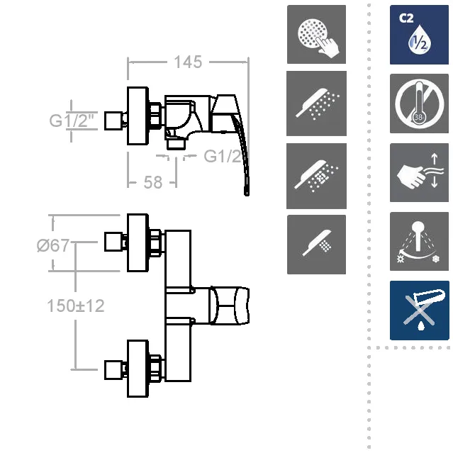 - Технологичность: благодаря системе Thermostop Block вы можете контролировать максимальную температуру горячей воды, обеспечивая дополнительную безопасность. Система экономии воды S2 позволит открыть ручку в два этапа, минимизируя расход воды.