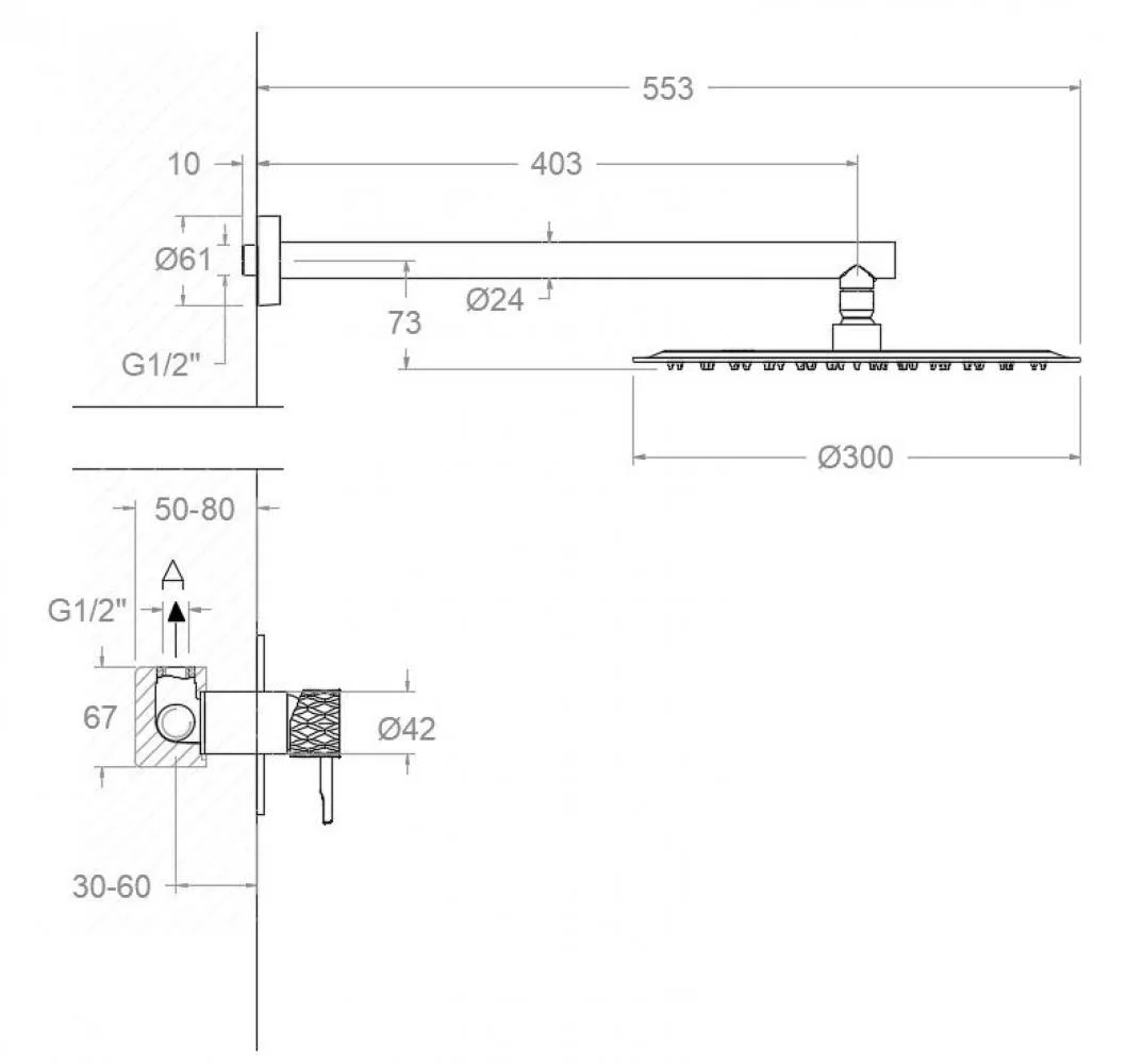 Смеситель для душа Ramonsoler Odisea встраиваемый на 1 выход с тропическим душем joya графит K5918013GR