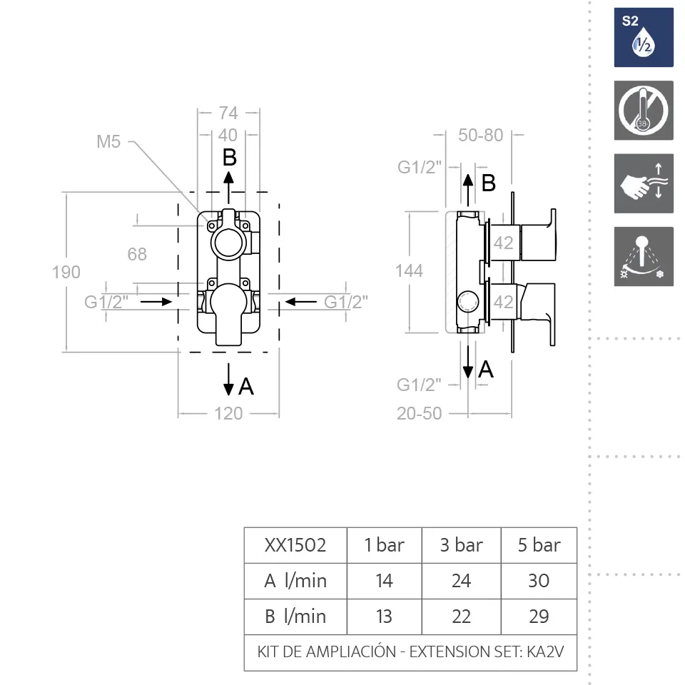 Коллекция RS-Q от Ramonsoler - это сочетание современного стиля и инноваций. Разработанная для того, чтобы создать идеальную атмосферу расслабления и комфорта, она включает в себя уникальную систему двуступенчатого открытия воды S2. Эта система позволяет уменьшить расход воды до 50% без потери удобства. При первом, сберегающем положении, поток воды легко открывается и остается стабильным. Для доступа к полному потоку нужно приложить небольшое усилие, что помогает экономить ресурсы и заботиться об окружающей среде.