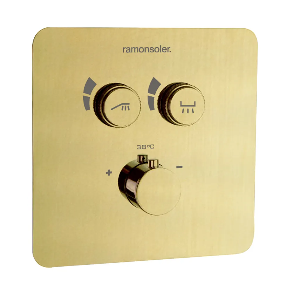 Смеситель для душа Ramonsoler RS-Smart встраиваемый термостатический на 2 выхода с внутренней частью золото 85T201SOC