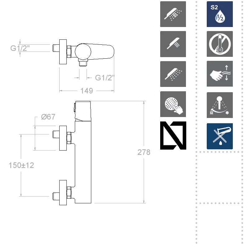 Смеситель изготовлен из хромированной латуни с никелевым покрытием толщиной 15 микрон и хромом 0,3 микрона, что гарантирует долговечность и износостойкость изделия. В смесителе используется керамический картридж Ø35 мм, который обеспечивает плавное регулирование температуры воды — это возможно благодаря системе Thermostop Block, ограничивающей максимальную температуру горячей воды.