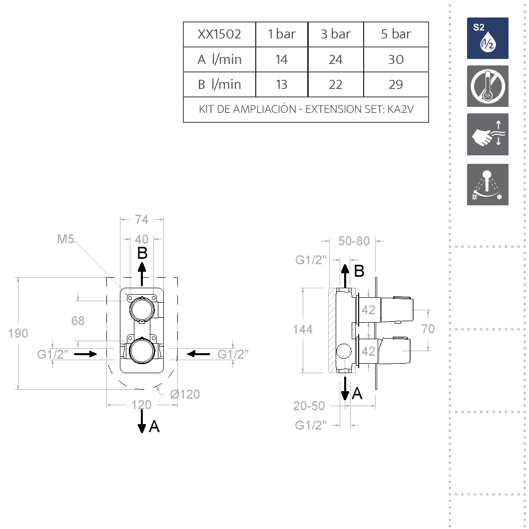 Преимущество этой модели заключается в наличии S2 системы двуступенчатого открытия воды, позволяющей экономить до 50% ресурса без потери удобства использования. Этот смеситель снабжён двумя положениями открытия; первое - это легкое и плавное состояние для повседневного использования, а для полного напора потребуется слегка преодолеть сопротивление.
