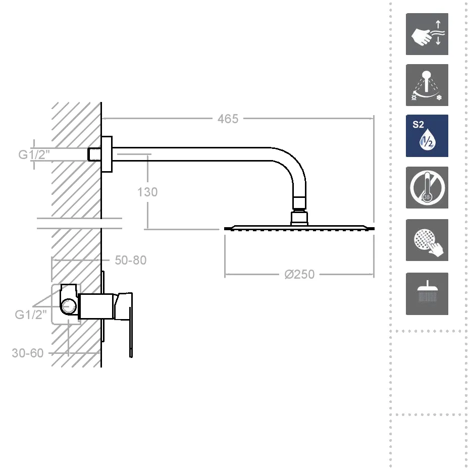 - Эффективное распределение потока воды достигается благодаря уникальной конструкции форсунок, что способствует освежающему тропическому дождю в вашем собственном доме.